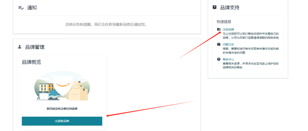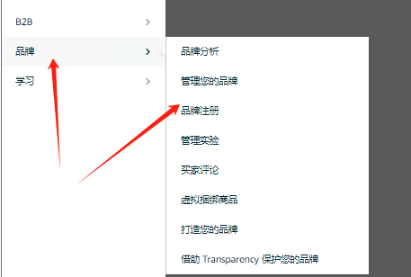 登录店铺后台首页下拉菜单或者左上角三条横线菜单选择“品牌注册”。