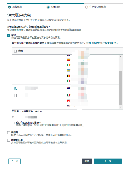 若商标持有者有公司与亚马逊店铺注册公司主体一致则选“是”