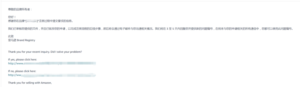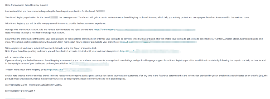 回复验证码之后正常当天或者第二天就能收到亚马逊的回复,收到这个就表示备案成功了。
