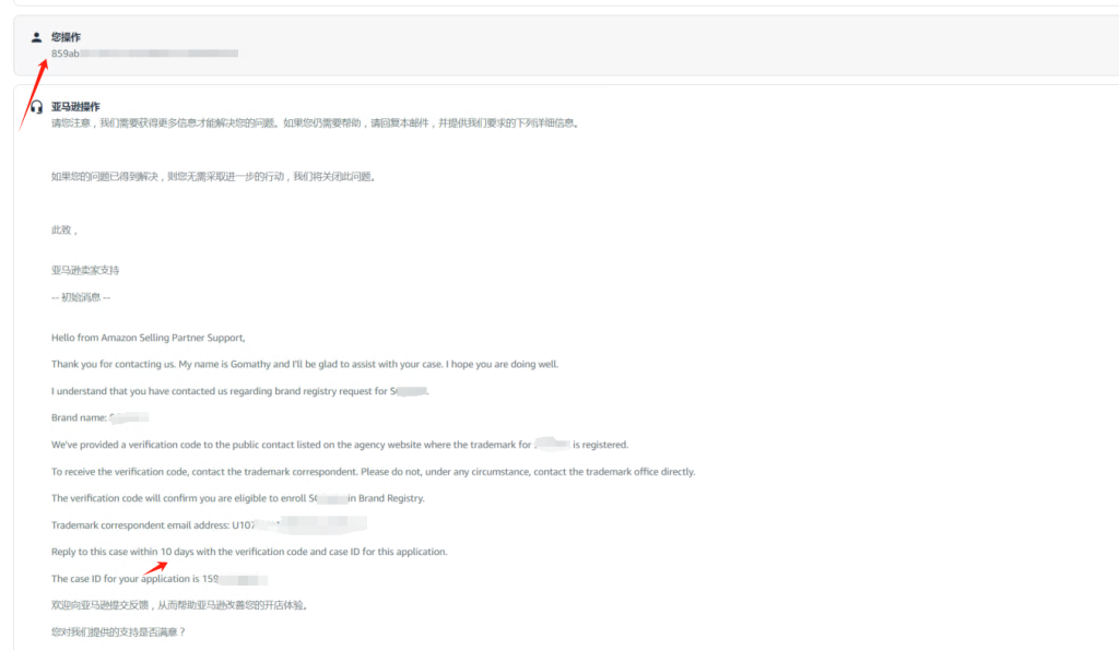 后续会生成一个新CASE,告诉我们“我们已经提供了一个验证码给商标所在机构网站上列出的公众联系方式”确保在10个工作日内回复验证码。就可以问商标代理拿验证码了,回复验证码到这条CASE。这个时候已经代表99%成功了。
